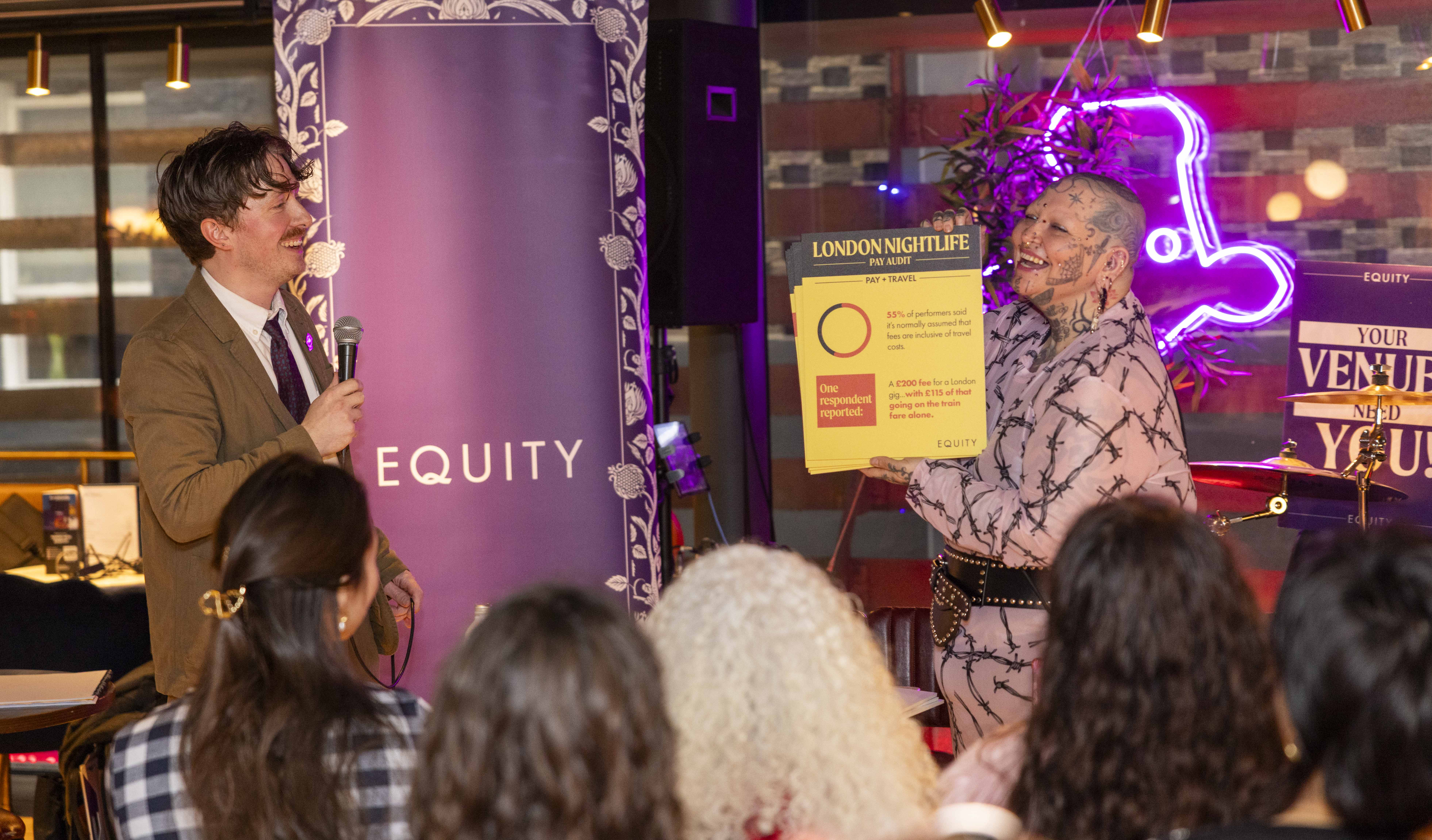 The event included the launch of new survey results, which showed that 98% of London nightlife performers say pay has not kept up with rising costs. Nearly a third say that rising transphobia, misogyny, homophobia, racism or far-right sentiment has made them feel less safe, due to audience aggression and when travelling to and from gigs.