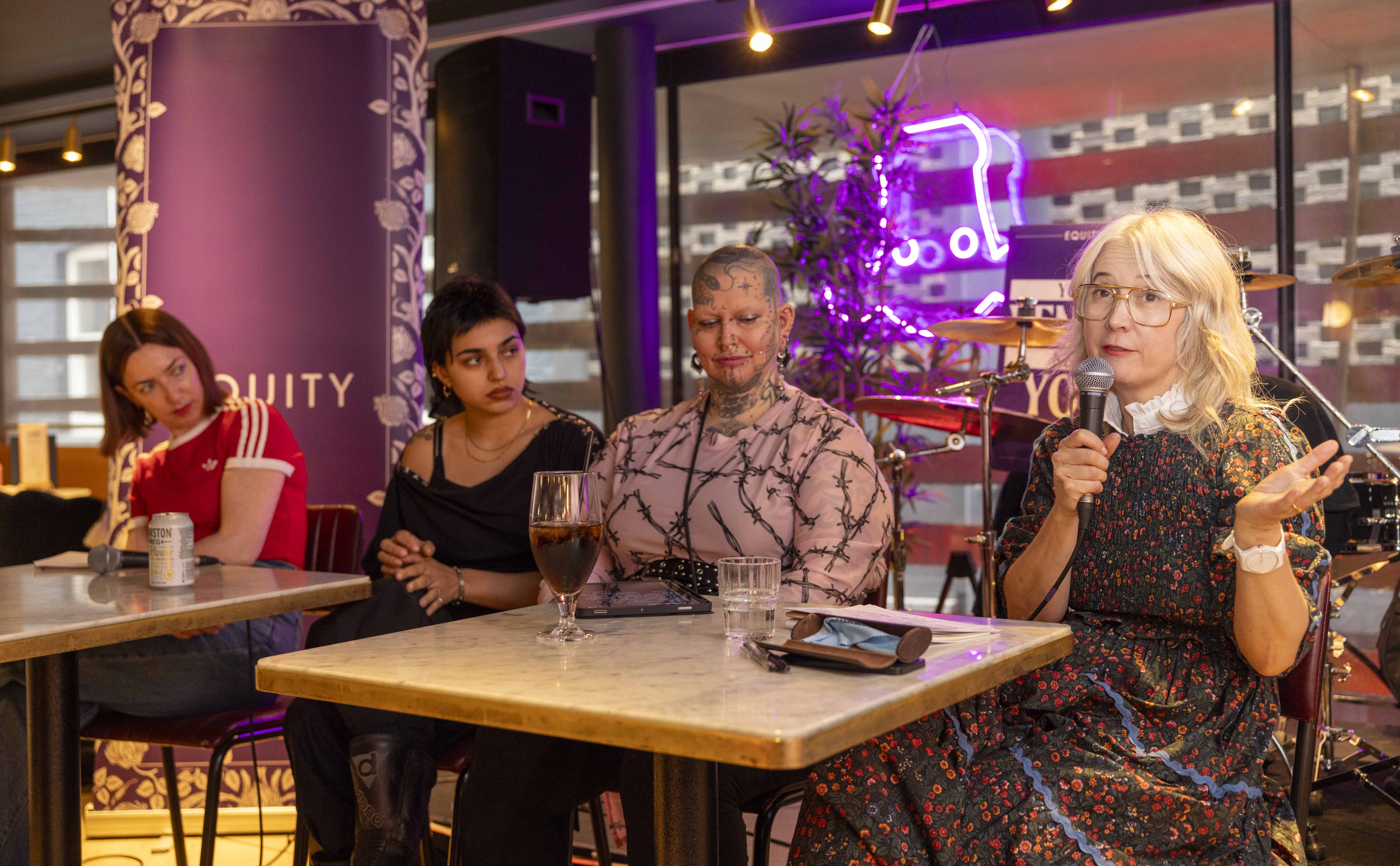 As the panel discussion continued, questions and comments from the assembled performers established many shared experiences of poor pay – part of fees being “behind the bar” – and a common issue of getting home safe late at night when public transport isn’t an option and taxis aren’t covered by the fee.